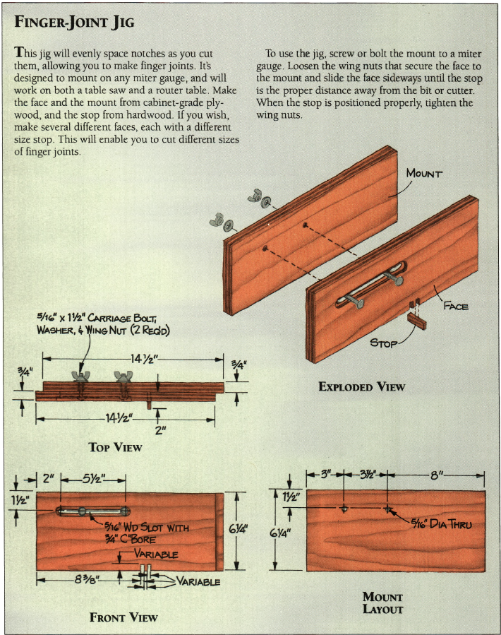 The clever (and easy-to-make) finger-joint jig image is from “Joining Wood” (click on the image to enlarge it for legibility), and you can see a handful more representative pages below. Click here to get your copy of “The Workshop Companion” DVD.
