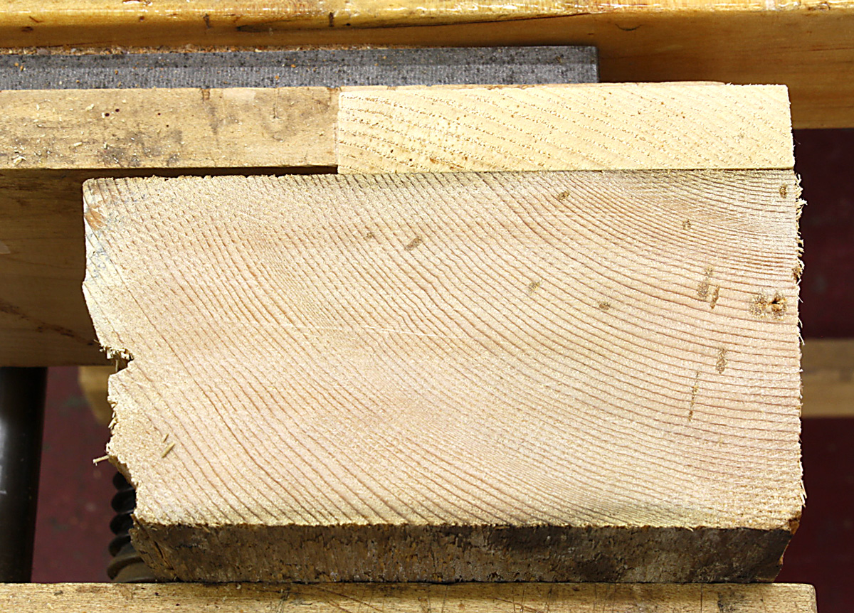 Here’s a close look at a piece of old-growth pine reclaimed from salvaged timber – on top of it is a piece of new-growth pine. Notice the difference in the growth rings (click on the photo to see a larger image). It’s no wonder some of the woodworking techniques used in the 18th and early 19th centuries wouldn’t go well with lumber we have available today. What would you do differently given these two different materials with which to work?
