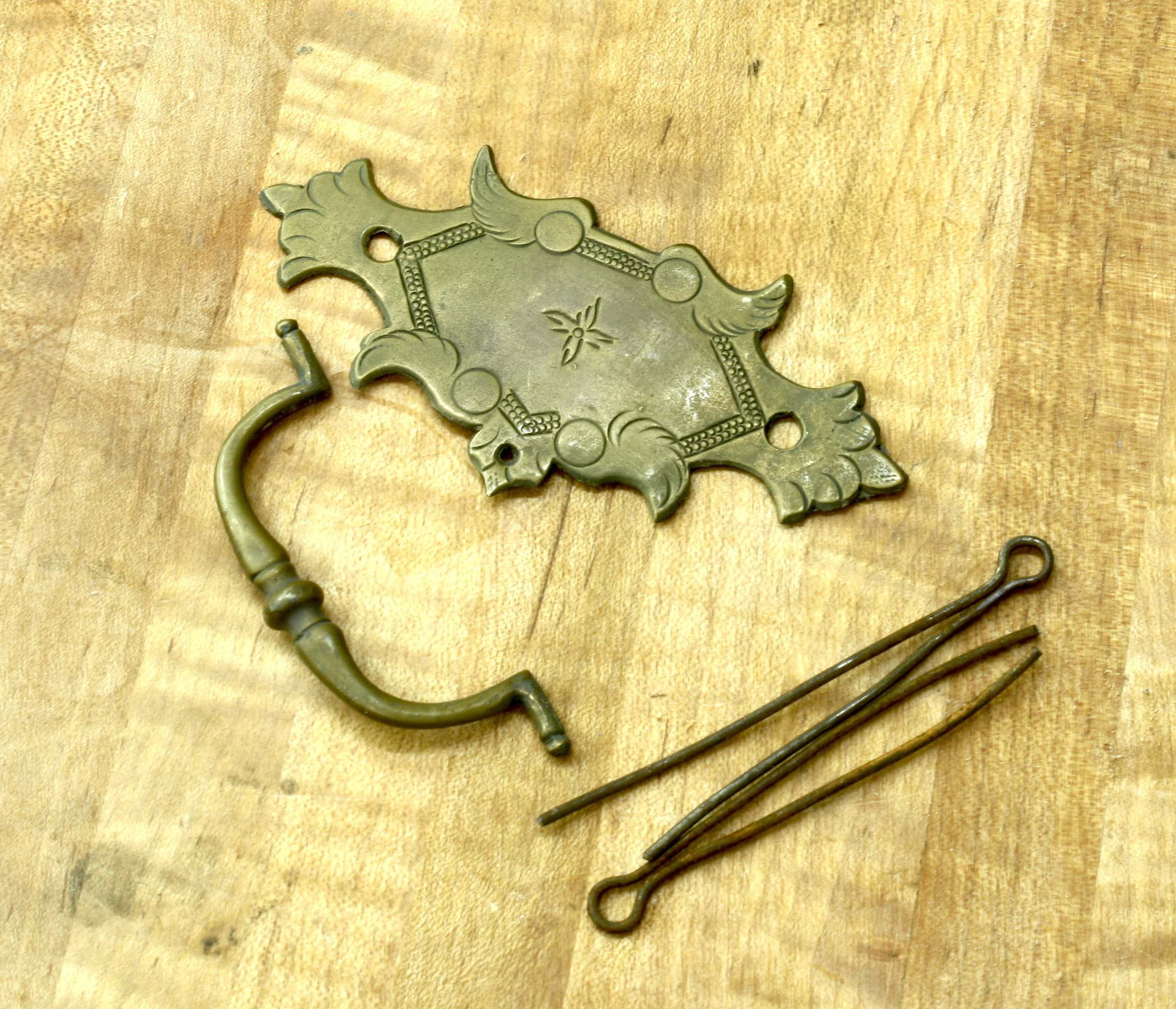 In the photo at left are the parts that make up a Queen Anne plate-and-bail design. This design is what I’m used to using as a period furniture maker working in the Queen Anne and Chippendale periods. This design stayed part of everyday use throughout the nearly 60 years that encompass the two periods in American history (approximately 1730-1790). The posts are robust.