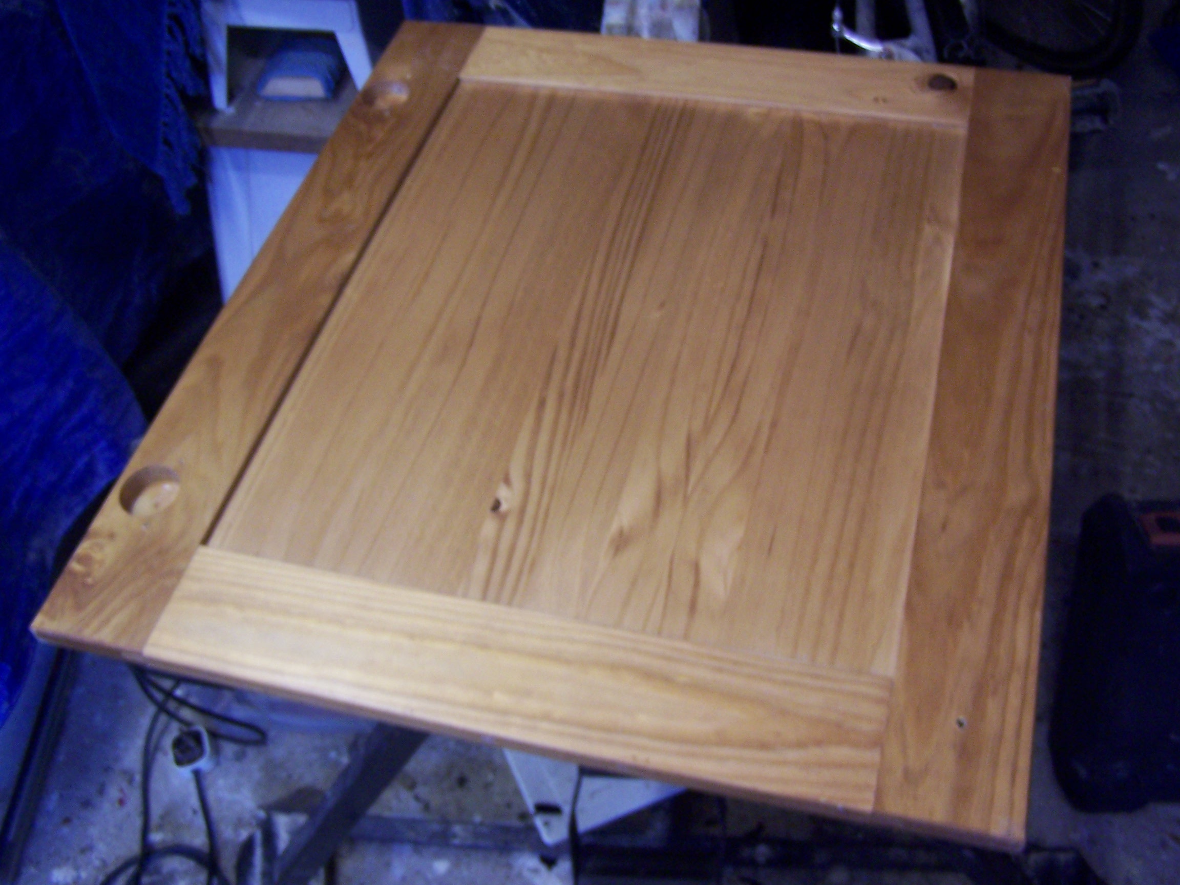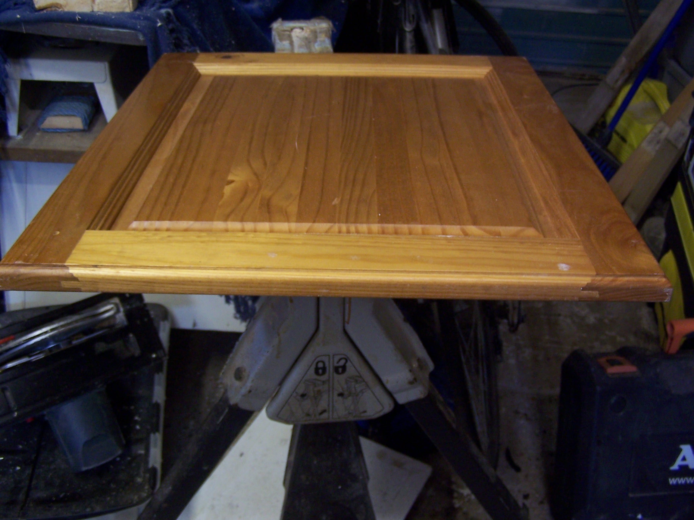 ONE OFF CABINET DOOR MADE FROM SAWN PINE 3X1 3/4 .PLANED THEN MOULDED ON THE SPINDLE MOULDER THAT IS ON THE KITY 5 MACHINE..HOLES RECESSED FOR CABINET HINGES.THEN JUST VARNISHED WITH BASIC INTERIOR VARNISH WITH A DARK GOLDEN HONEY COLOUR STAIN ADDED.