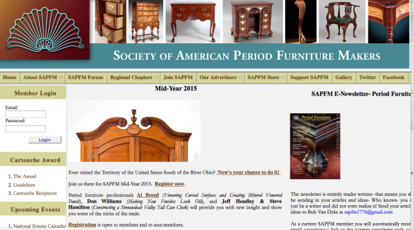 In the June 2015 issue of Popular Woodworking Magazine (which should be landing in subscriber mailboxes any day now if you’ve not already received it) I chose as “highly recommended” (page 12) a membership in the Society of American Period Furniture Makers (SAPFM).