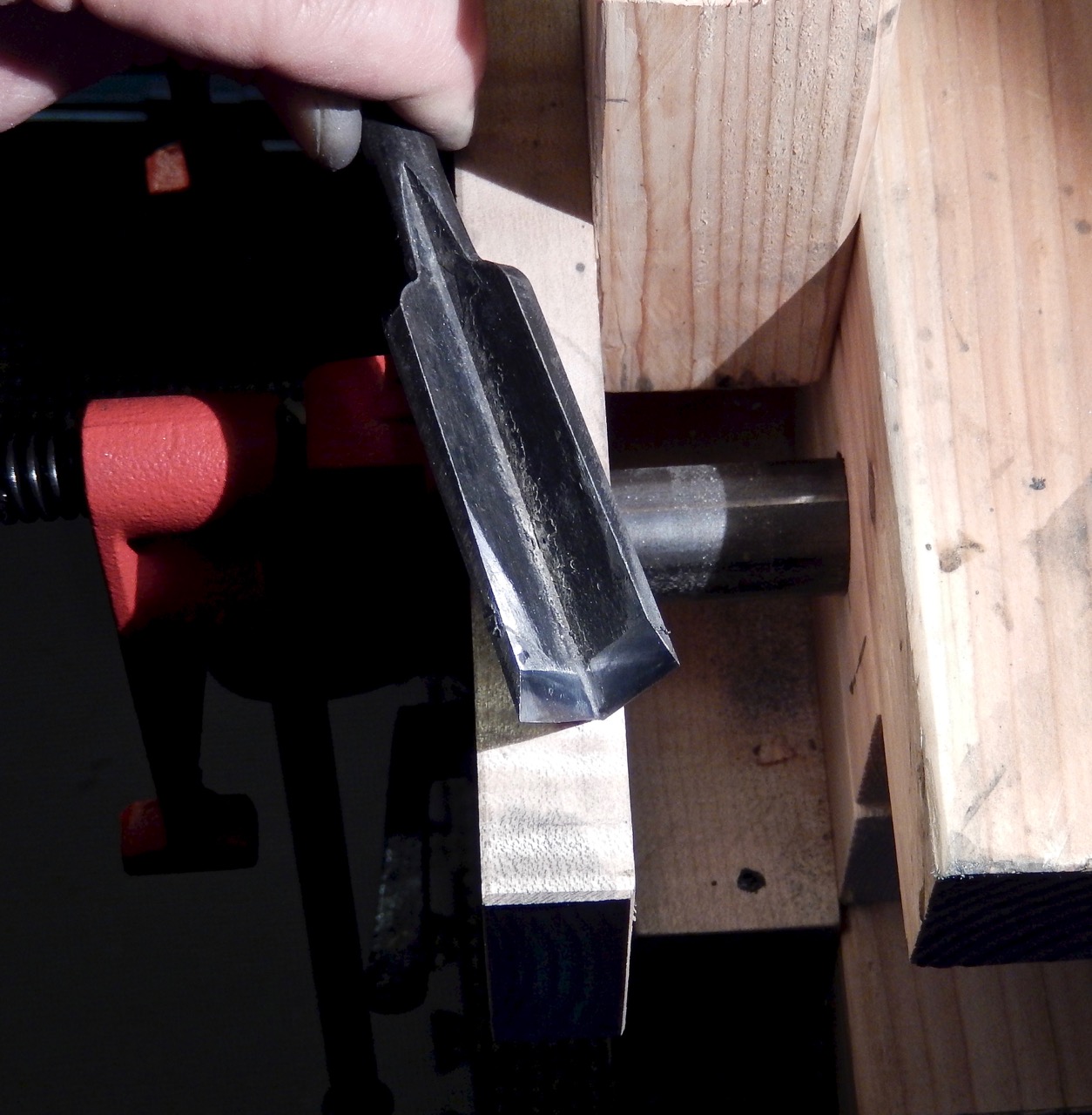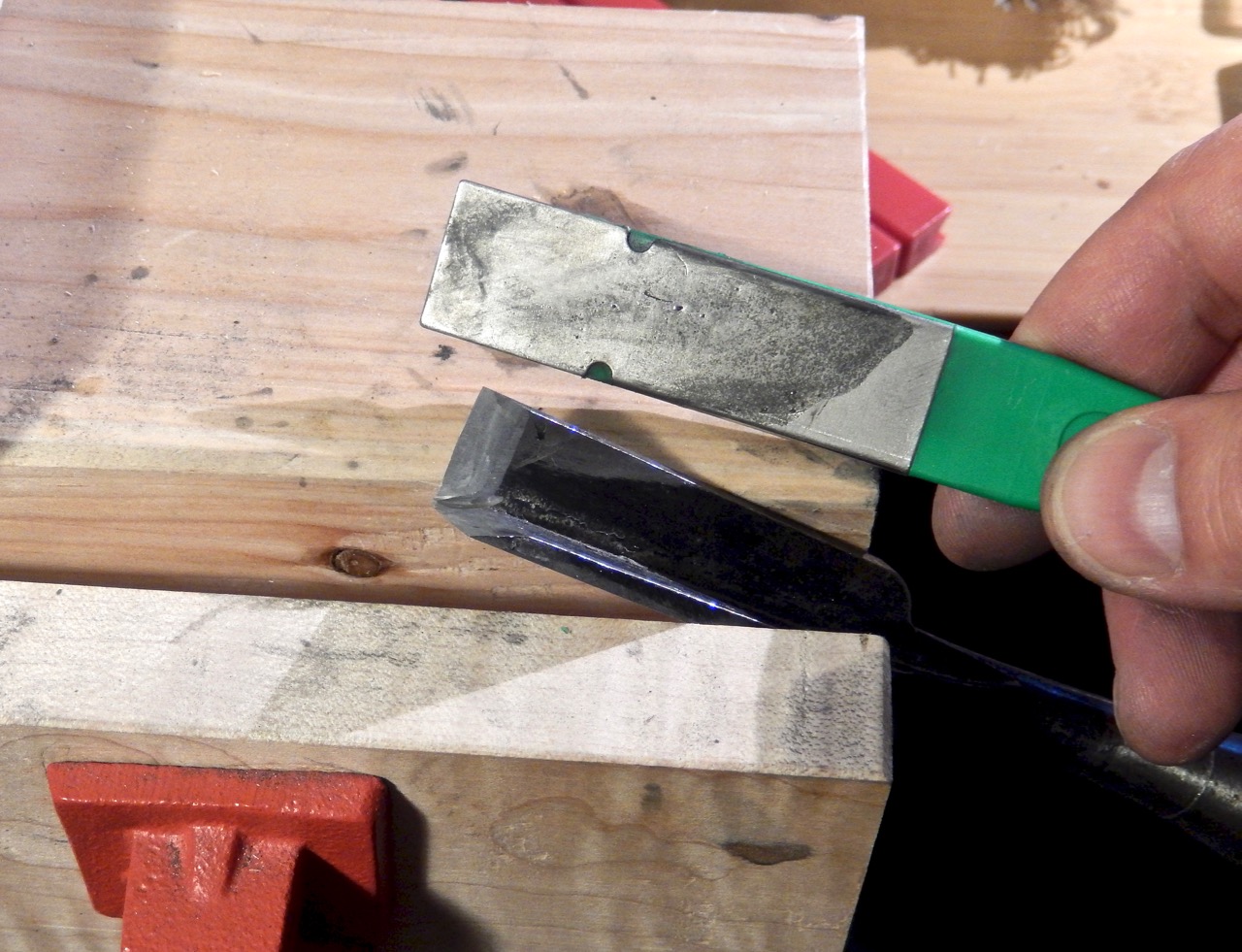 My Japanese corner chisel is not the most handy tool in my tool box. In fact, I hardly use it. But since I have it, I feel obligated to keep it sharp. If you own one and look for instructions on how to sharpen it you will see that all of the demonstrations use flat abrasive stones or files such as diamond, oil, Arkansas, or a piece of steel wrapped in sandpaper.