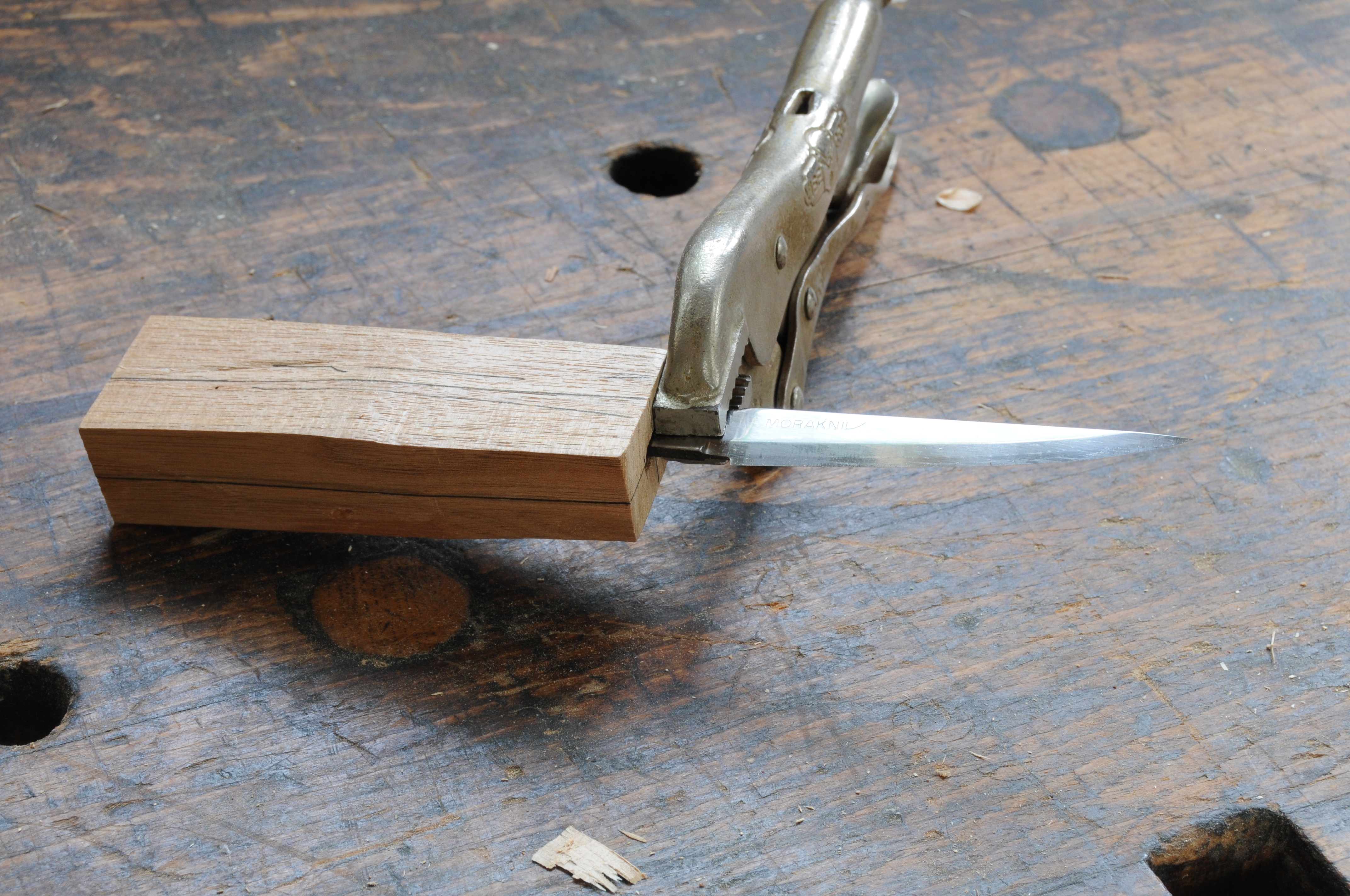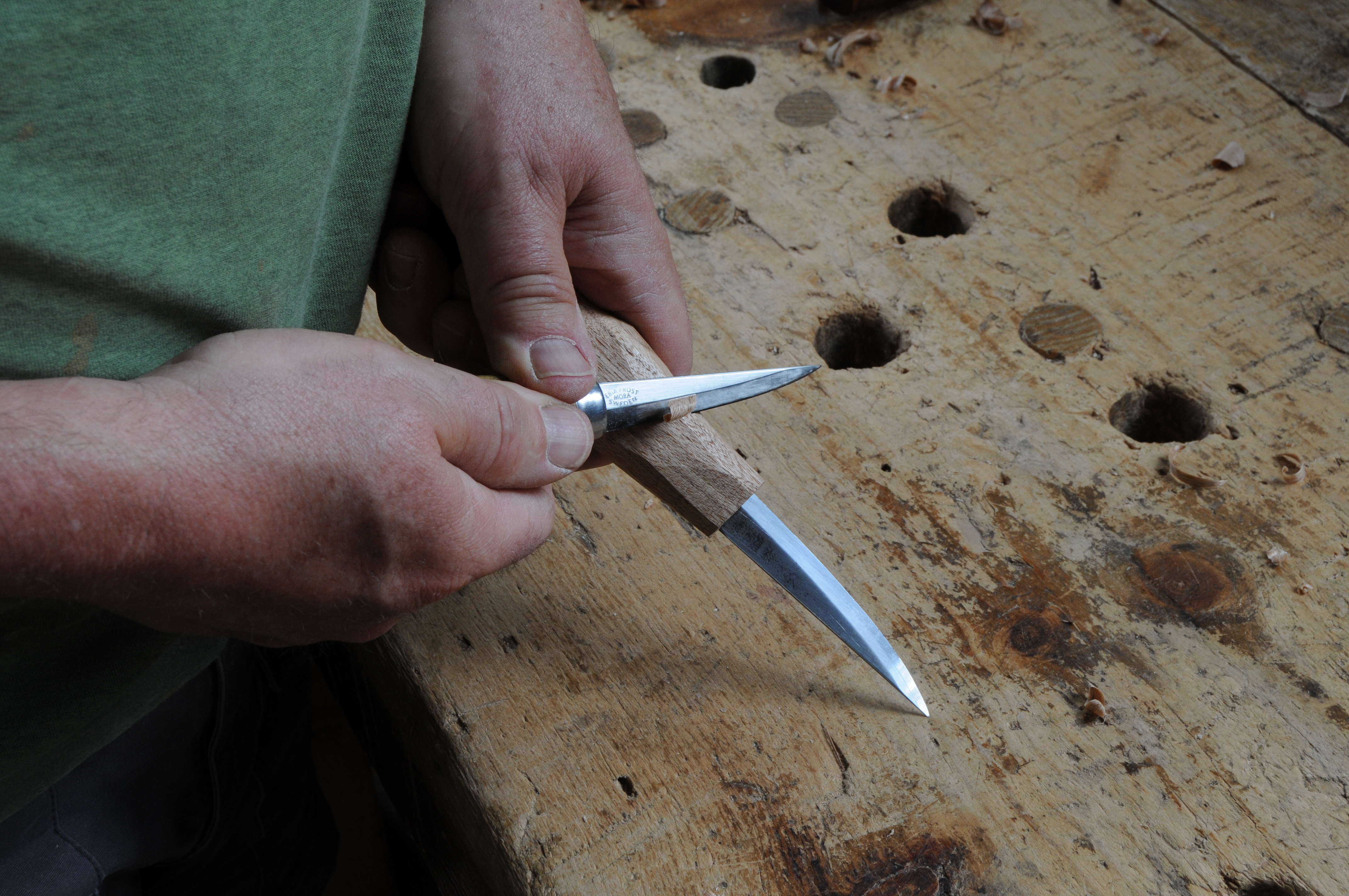 Shape with another knife. Lightly pare with the slöyd knife. Keep alert to not hit metal with metal.