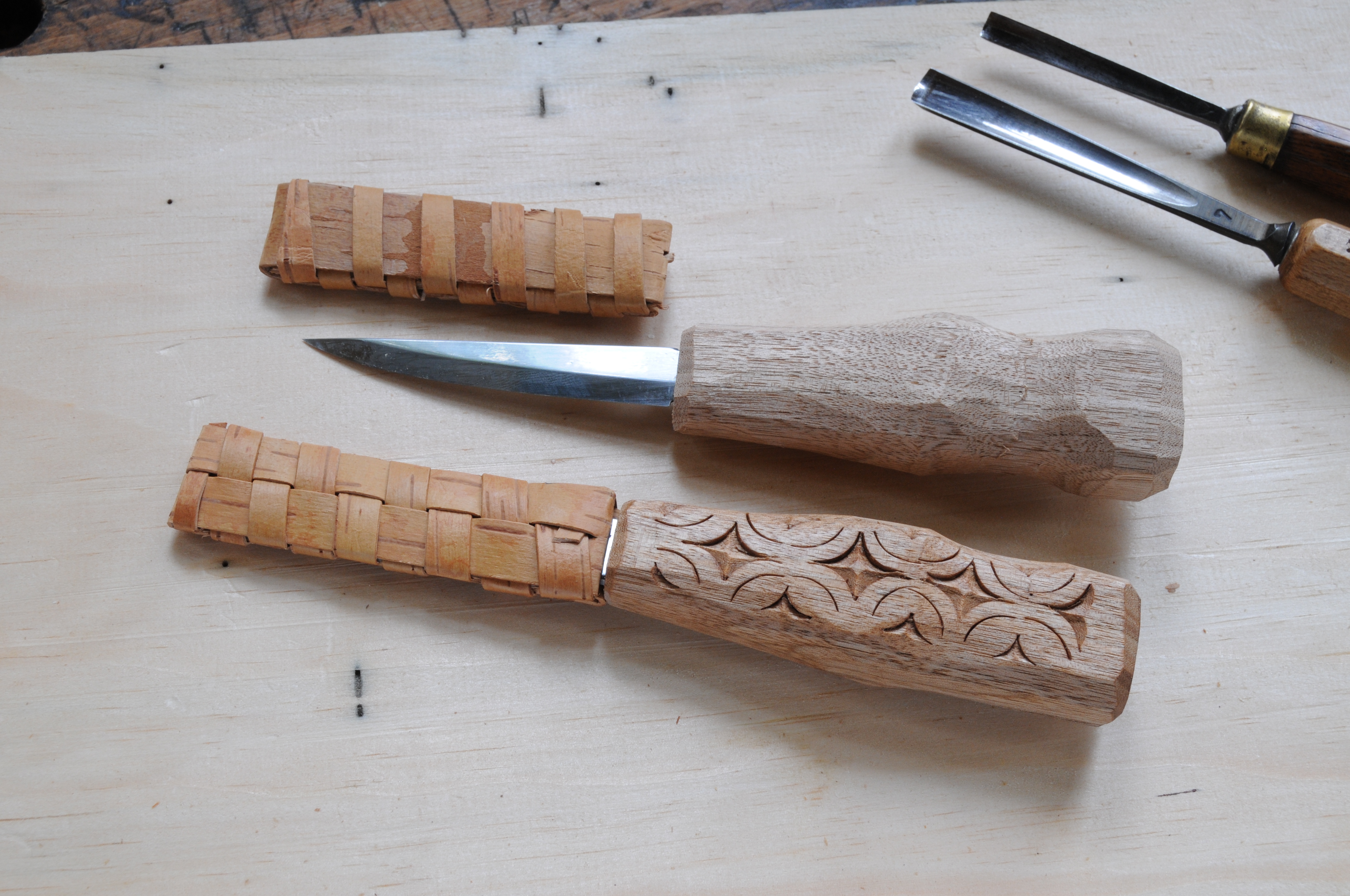 I have used a slöjd (or slöyd) knife for decades. Fitting them with a handle of your own making is pretty simple, and quite rewarding. You can tailor the handle to suit your hands and/or your eyes. I start with a knife blade made by Morakniv. They have several sizes and shapes, and their #106 is a favorite of many carvers the world over. I use the laminated steel version; it’s easy to sharpen, but holds an edge just fine.