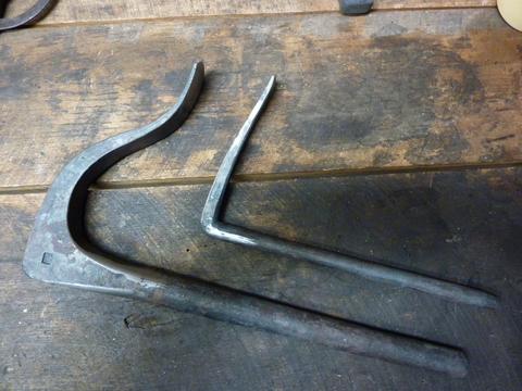 Last year I commissioned blacksmith Peter Ross to make a holdfast for me that was made as close as possible to Andre Roubo’s instructions. Ross is quite familiar with Roubo, but I sent him a translation of the section on holdfasts that a friend did a few years back that also converted the French inches to modern inches.