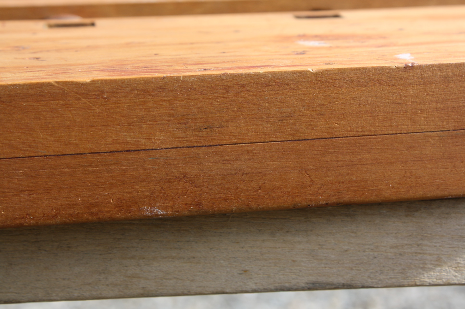 Main body: Made from dense pine, and made out of two boards face-glued together. Dimension: 4-1/4″ x 28″ x 1-5/8″.