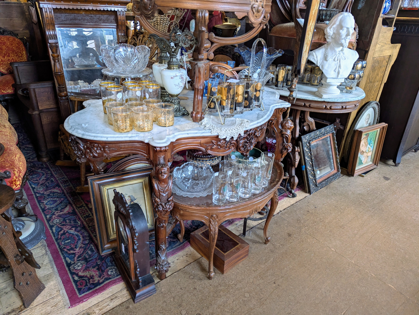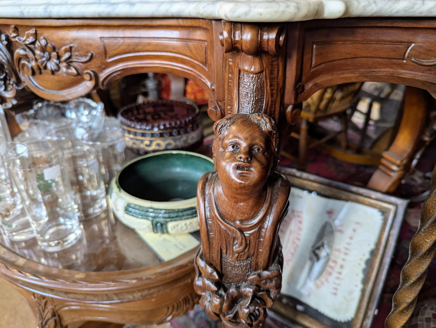 Frankly, this baroque-esque table has way too much going on, regardless of the level of craftsmanship. The last thing I want to do is crack my knee on a cherub’s face when I’m walking down the hall to the bathroom at night. Pass.