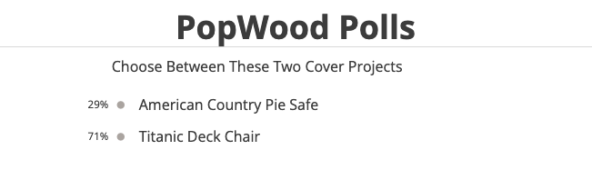 In a result that wasn’t too surprising (to me at least), the Titanic deck chair was the clear project preference in last week’s poll. I’ll have to do something like that again soon.