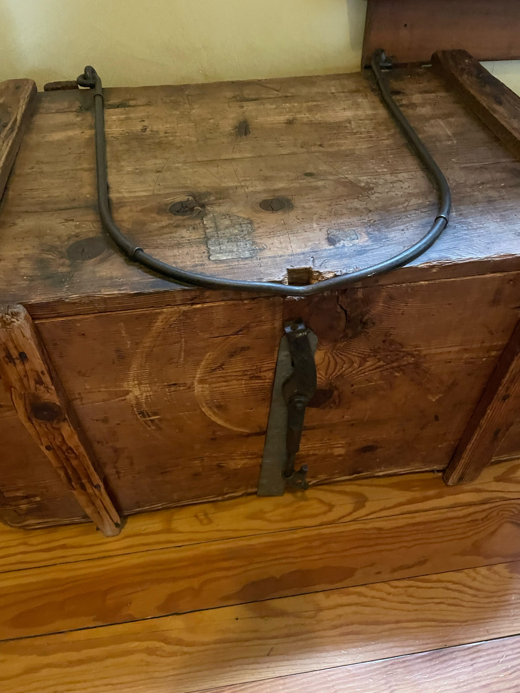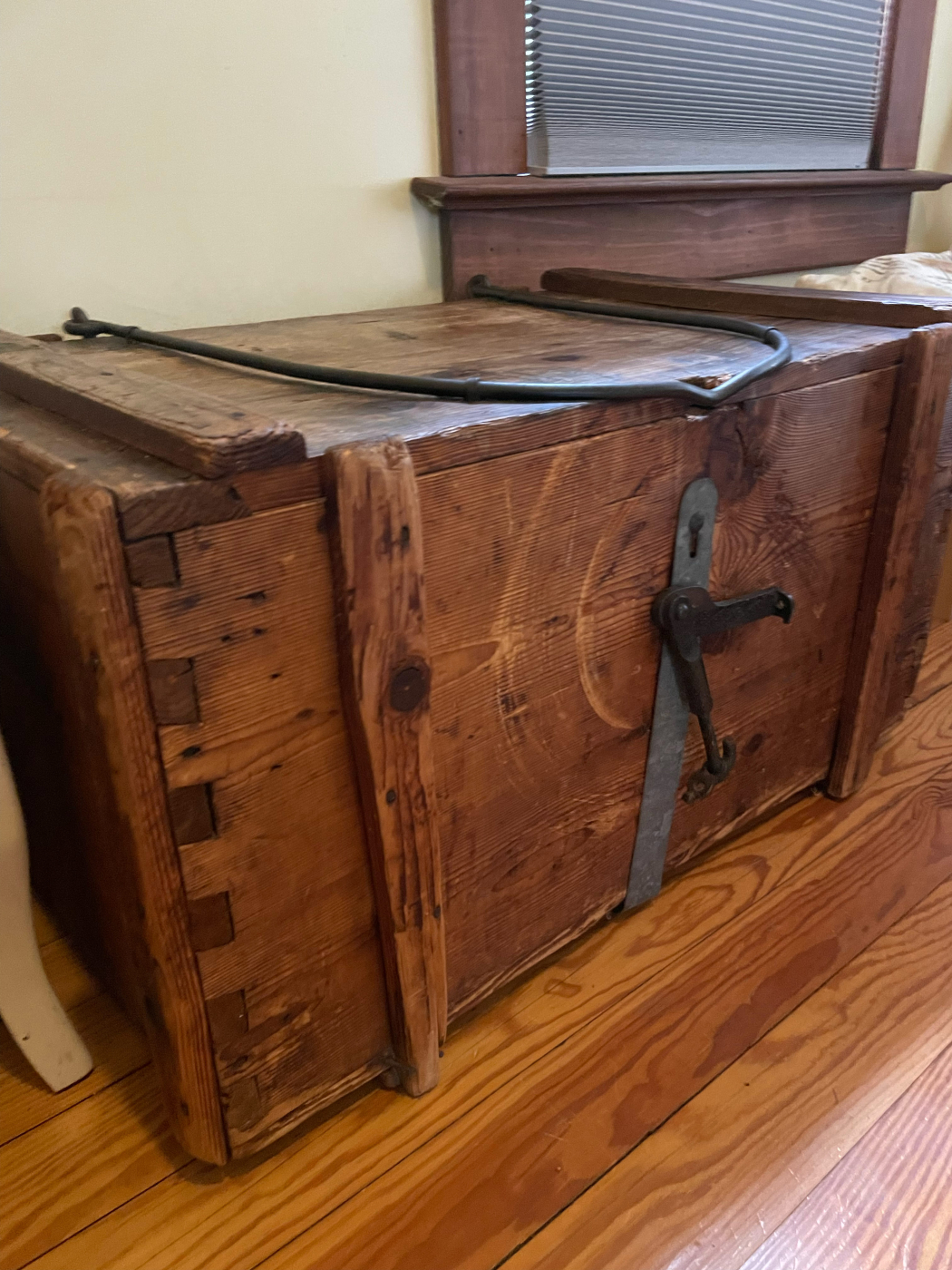 Luthier Michael Bashkin recently took possession of this rather strange chest. At first glance, it appears to have been used possibly as a traveling chest, but the more you look, the odder things become. Look at the joints for example: those aren’t dovetails, they’re finger joints cut at an angle. Even the hardware is odd, seeming over-built for the size of the box. Maybe something valuable was held inside? Let us know what you think on social media.