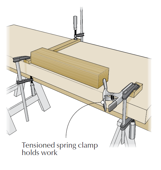 The only bit of fuss is to get the blocks far enough apart so the spring clamp exerts enough pressure to hold the workpiece – but not so much that it’s difficult to put the workpiece in place.