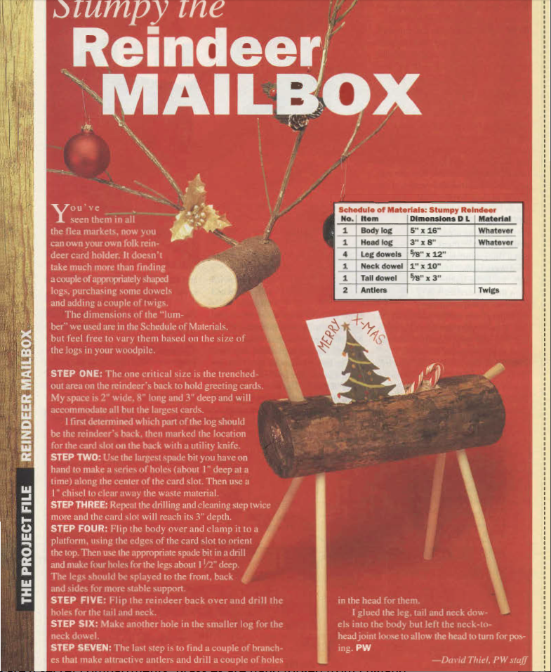 I’ve been know to make fun of the 1997 “Stumpy the Reindeer” project…but I have to admit that it’s a cute and simple decorative piece for the holidays – and one you can make in about 10 minutes if you leave out the card slot in the reindeer’s back (and in 20 if you include it).