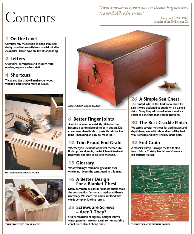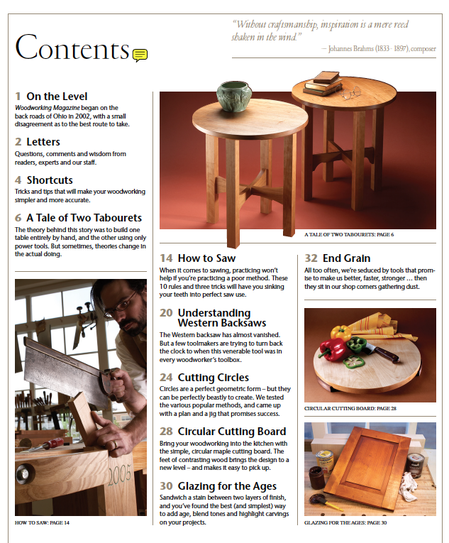 For those of you unfamiliar with Woodworking Magazine, it’s a 32-page 2-color-interior (black and sepia-toned) labor of love written entirely by the Popular Woodworking editors, that was published from 2004-2009. It had no ads, no extra staff and a lot of great woodworking information. (After ceasing publication, we folded some of the WM approach into PWM…and regained some much needed hours of rest).