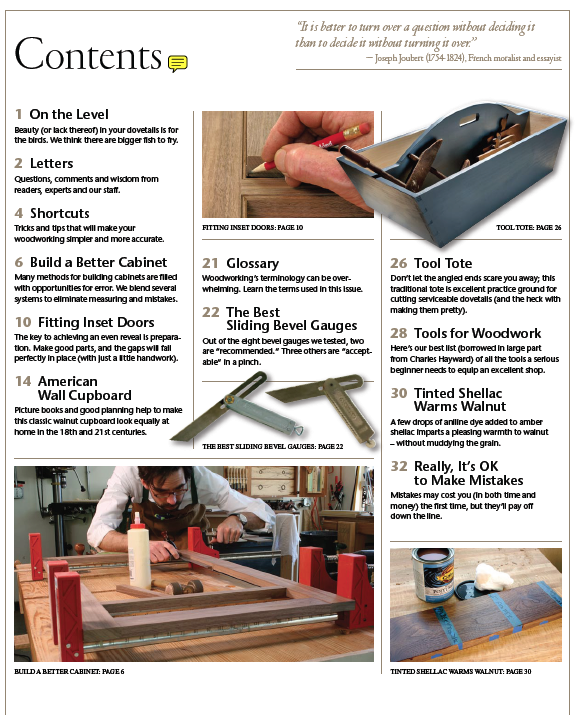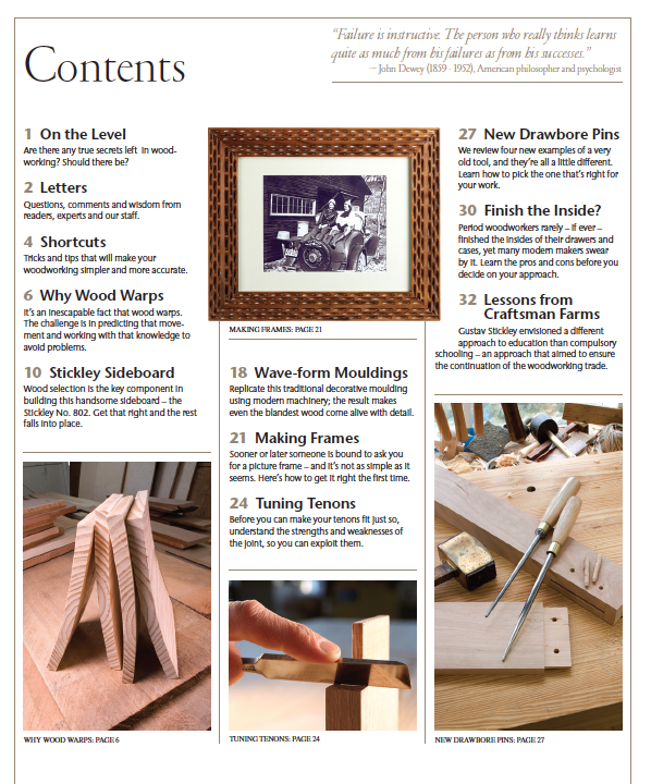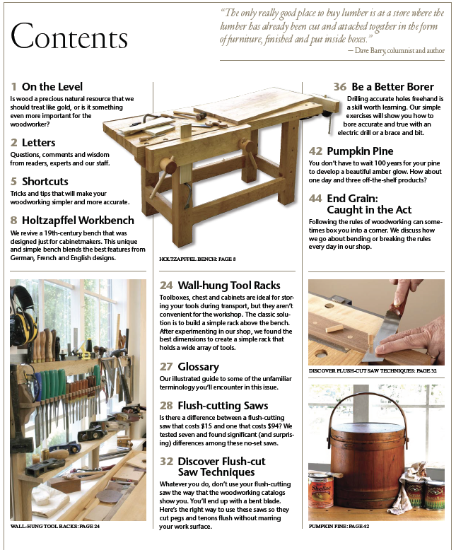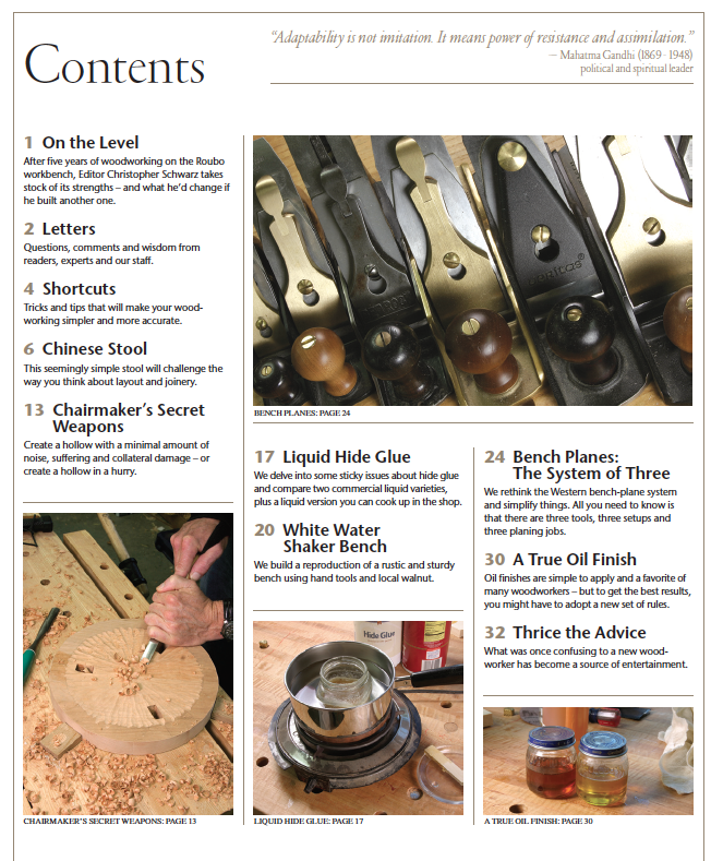 I love that approach – but it’s darn near impossible to sustain in a magazine such as Popular Woodworking, which is 60-70 percent freelance written. Plus – and perhaps most important – it’s somewhat limiting in terms of what can be covered in every issue; it’s simply not a viable approach for a magazine that reaches more than 100,000 readers, all of whom have varied and wide-reaching woodworking interests. (That said, we are going to start folding in to PWM a few more of the WM ideas, starting in the June issue.)