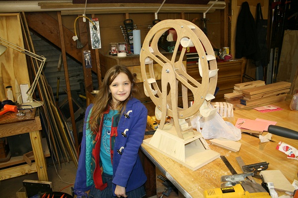 The next thing that impresses me about Jeff’s approach is that he tailors it to each child. And he clearly allows the kids to decide what they are making. Jalen’s brother Jordan is into writing as much as woodworking. He has built some great tools for his writing work, including a Triple Opening Writing Box for the desktop. The daughters, Janae and Jaida, have equally diverse interests and projects. Janae likes graphic arts and explores fairly complex joinery in her work. Jaida, the youngest, is very playful with her work and has completed a Ferris wheel of her own design! So I think the key with this is to create some structure, but allow the kids to be as creative as they want. That’s how to maintain interest.