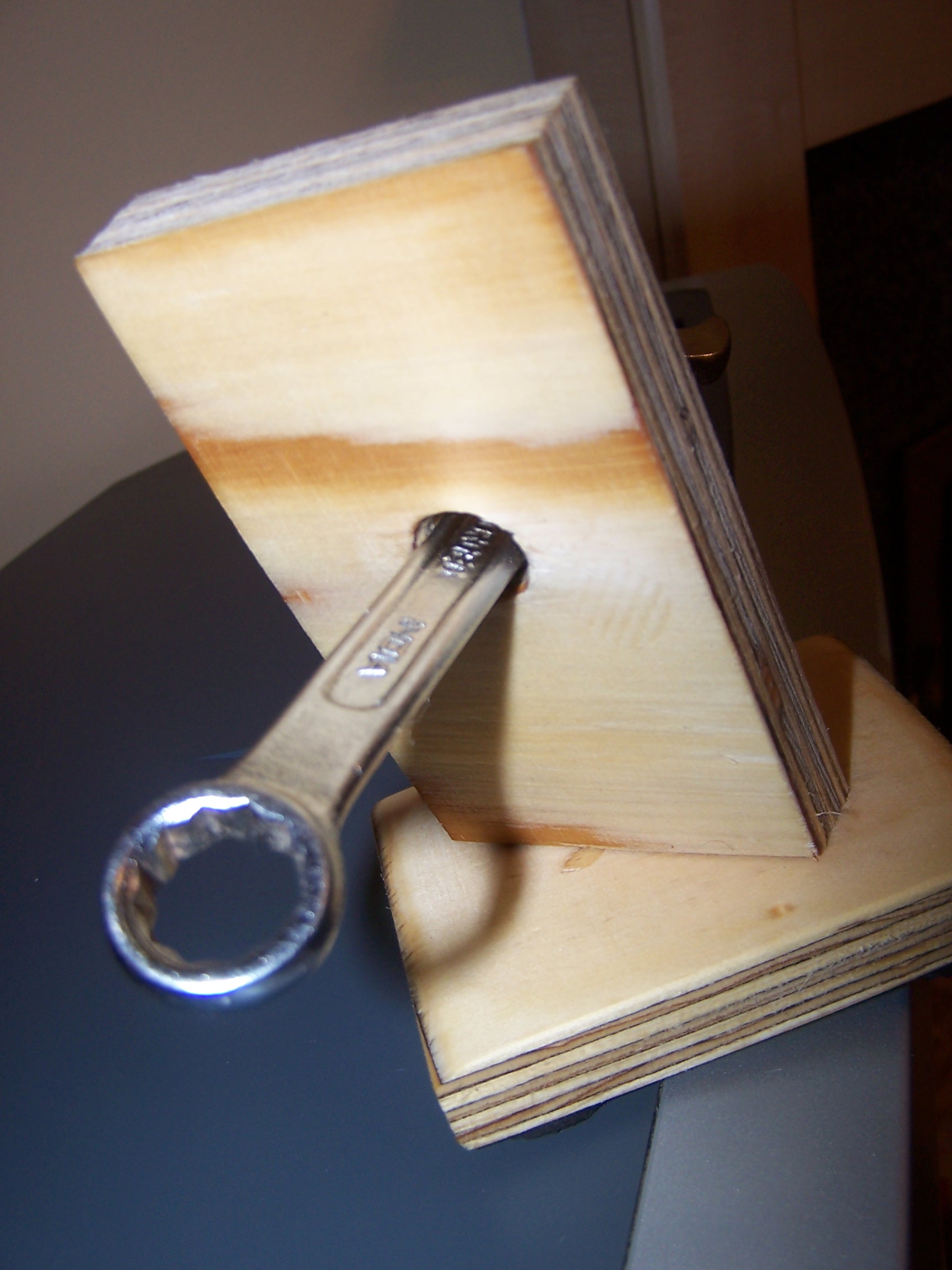 The wrench through solid 1 inch plywood .This will be going to a museum in the north west of england this week for showcasing. Took 2 hours to do but this still amazes people world wide. How did he do that.??? IMPOSSIBLE MADE POSSIBLE ?WHEN YOU KNOW HOW ???
