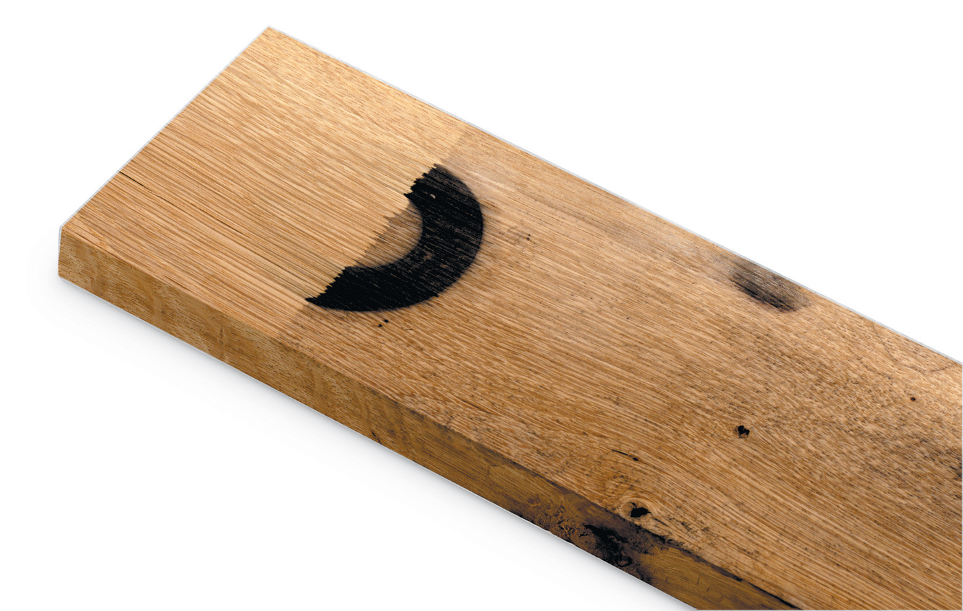 Iron, in the form of nails, hardware, or even bits of steel wool, often leaves a blackish stain on woods high in tannin, like oak. A wash of oxalic solution removes these stains as well as the grayed color of oxidized wood.