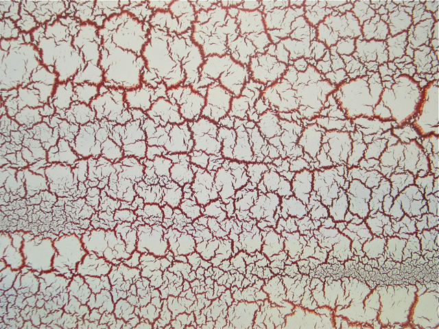You can control the size of the cracks and “islands” in between by varying the thickness of the crackle coat and the length of time it takes to dry. Thicker and slower drying crackle coats develop larger cracks and islands. Thinner and faster drying crackle coats result in smaller cracks and islands. (It’s similar to mud cracking on dirt roads.)