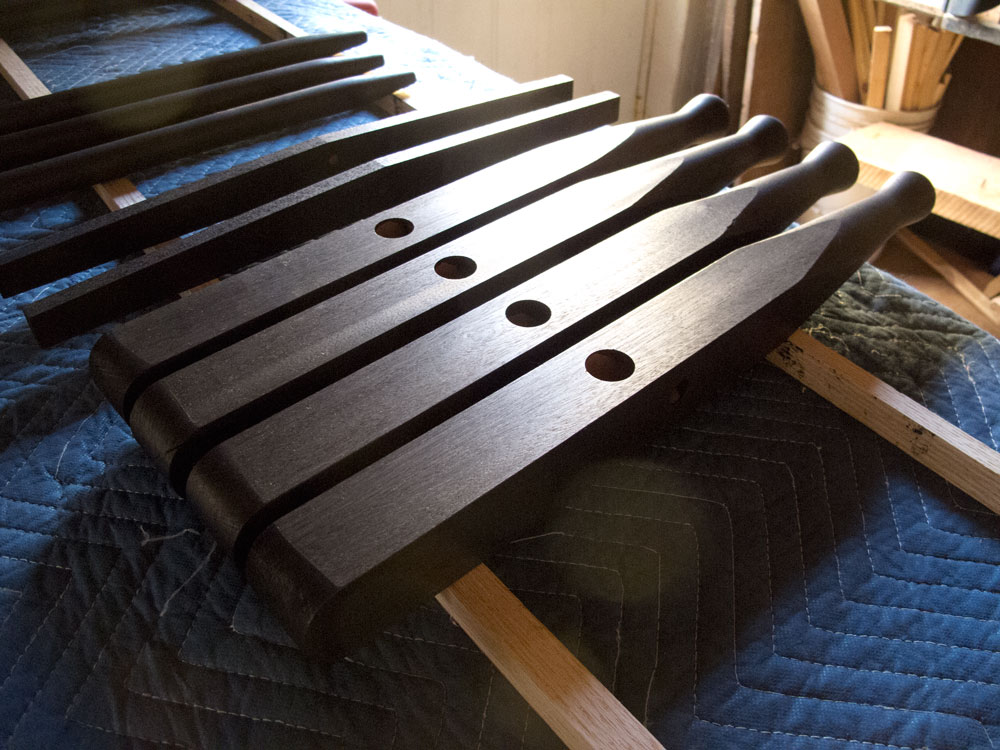 Today I’m using the Flemish Black Oak dye to ebonize some mahogany legs for a Kaare Klint Safari Chair – the final project in my forthcoming book, “Campaign Furniture.” As I was applying the dye, I remembered a few things that weren’t on the instructions. So if you’ve never used dye, here are a few tips.