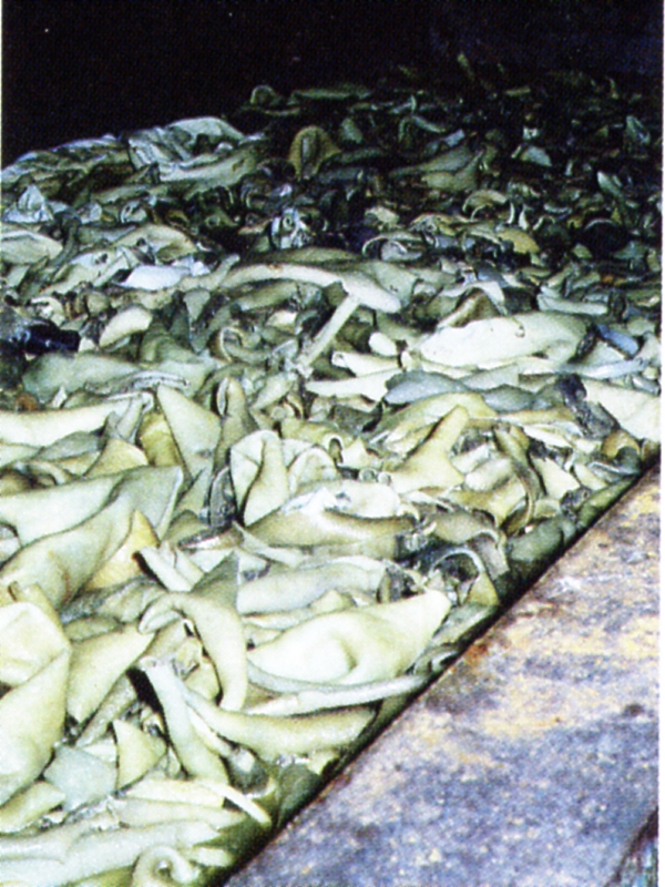 After the leather scraps have been washed, soaked in lime, washed again and neutralized, they’re put into a tank and cooked in water to extract the glue. Each cooking produces a lower-gram-strength glue.