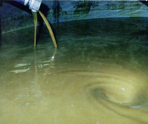 The dilute glue solution is then filtered and poured off into another tank where most of the water is vacuum evaporated.