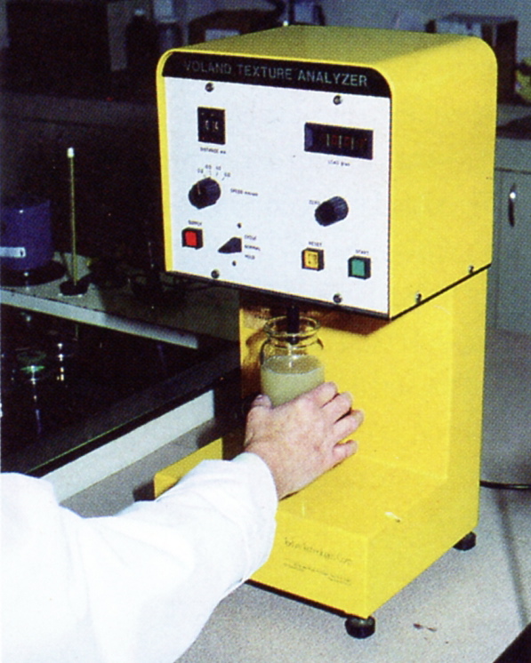 To determine the gram strength of the glue, a 1/2-inch diameter plunger is pushed 4 millimeters into the surface of a 12.5% solution at 10 degrees Centigrade. The amount of weight in grams required to accomplish this is rounded off to the nearest “midpoint,” is the gram strength of that batch of glue.