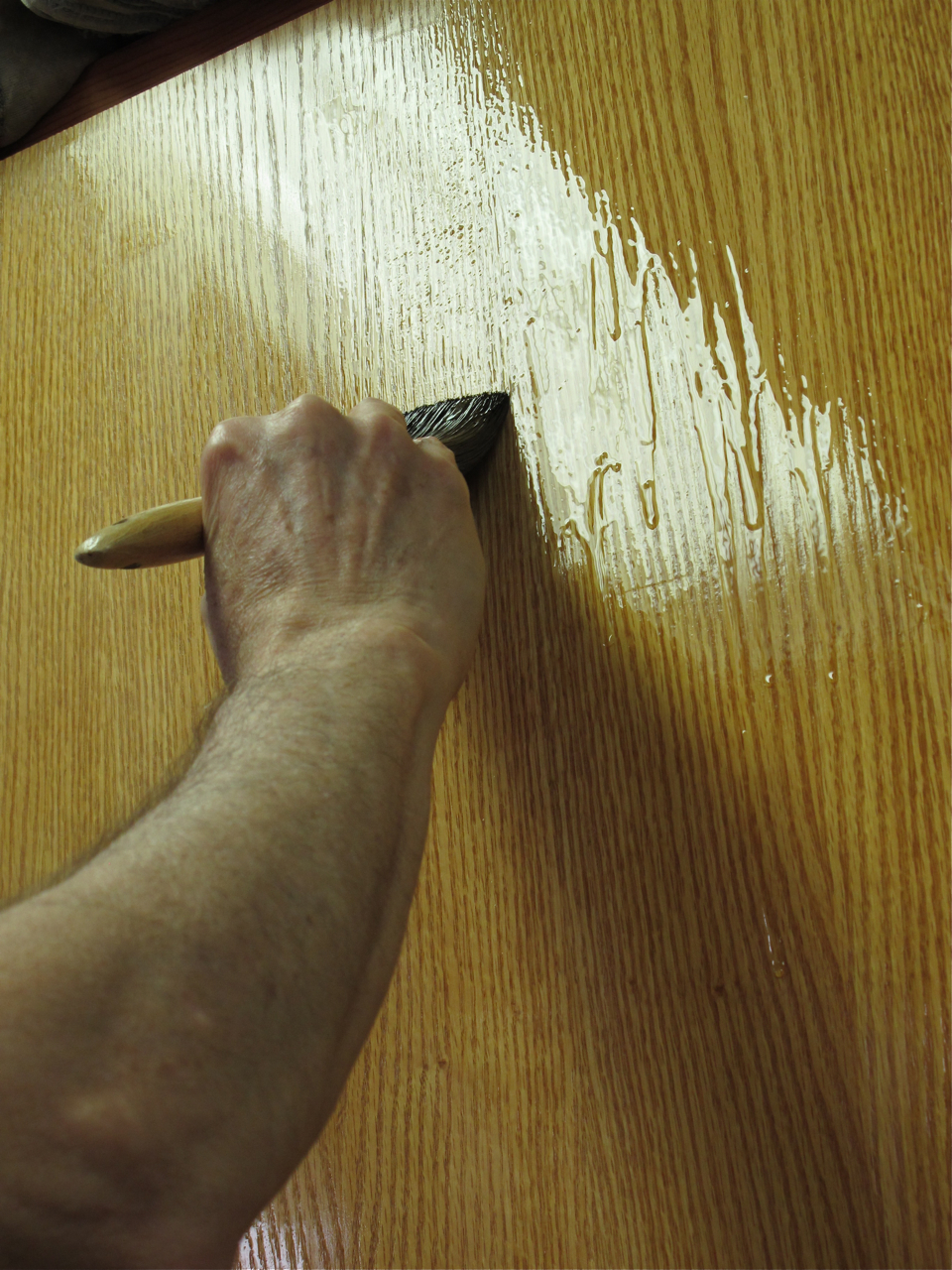 The remedy is simple. You should never have runs or sags drying in your finish whether you’re brushing or spraying. The way to achieve this level of perfection is to watch the surface you’re brushing or spraying in a reflected light. You may need to arrange some lights or move your body and your head often to see what’s happening.