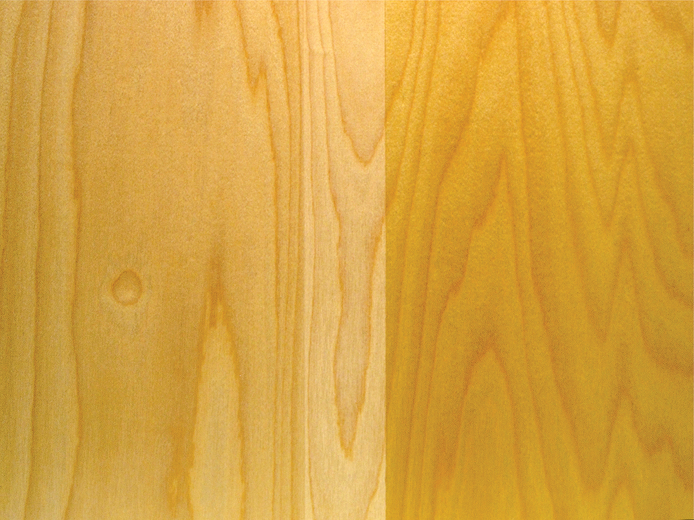 ■ Color. Water-based finishes add little color to the wood. All other finishes (except possibly CAB-Acrylic) add some degree of yellow-to-orange coloring.