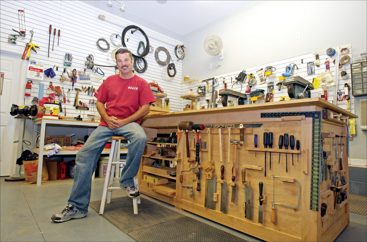 “Planning my shop was really interesting,” Ray says, “because I studied pictures of many different shops. I was able to lay out my shop from a blank sheet of paper and arrange things properly. I like having the shop connected to my garage—this makes it easy to move in lumber and plywood. I also like having plenty of space to work and having all my tools easily accessible—just like the pit crews at Talladega. For fun, I’ve added some NASCAR memorabilia along the walls. I’m happy with the results, although I wish I’d incorporated more storage space.” Join the club, Ray.