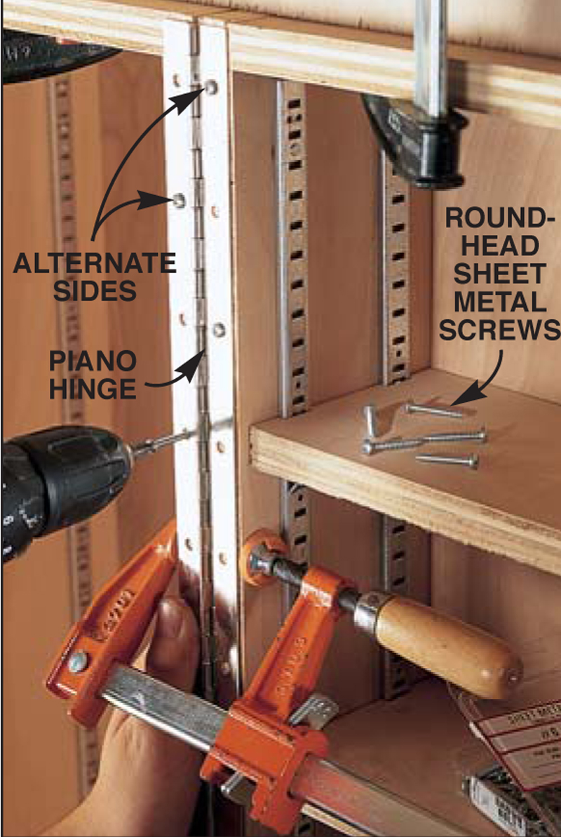 7. Clamp the doors in position before installing the hinges, using a shop-made