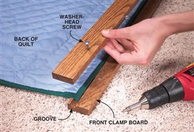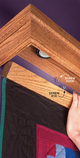 studs in the screw cleat on the back of the quilt hanger. After the quilt