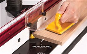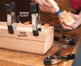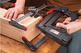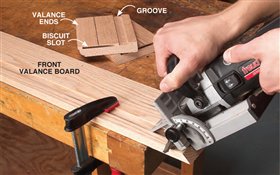 2. Cut biscuits in the mitered ends of the valance boards. Position the