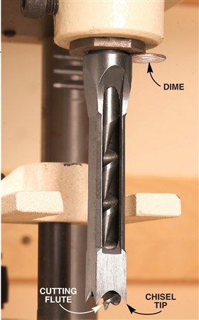 Temporarily install the chisel with a dime