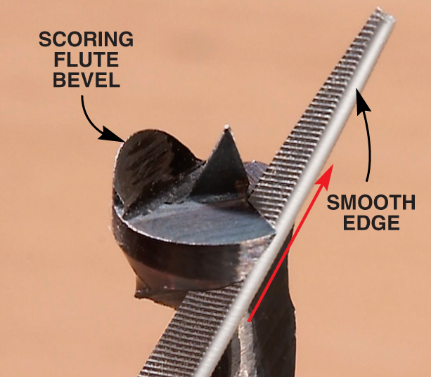 Sharpen the auger’s flutes with a small