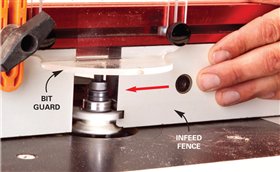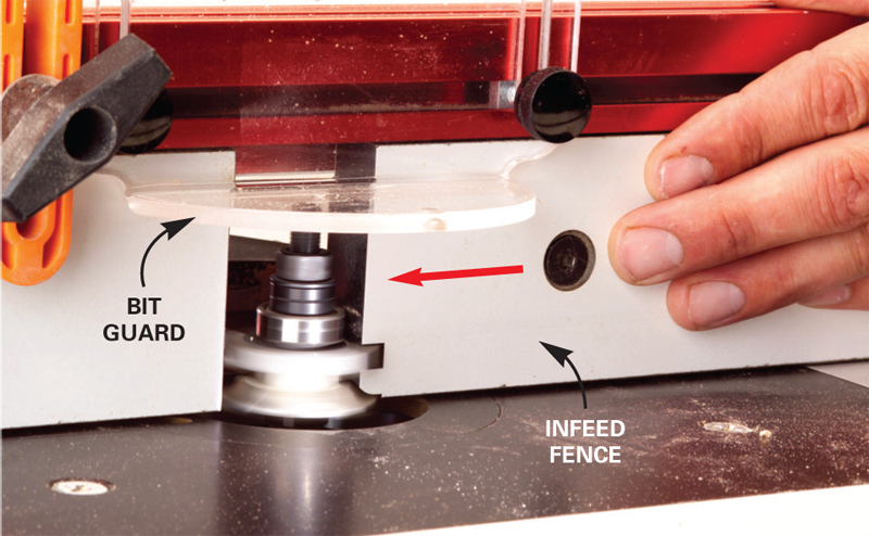 11. Make a zero-clearance fence by slowly sliding the infeed