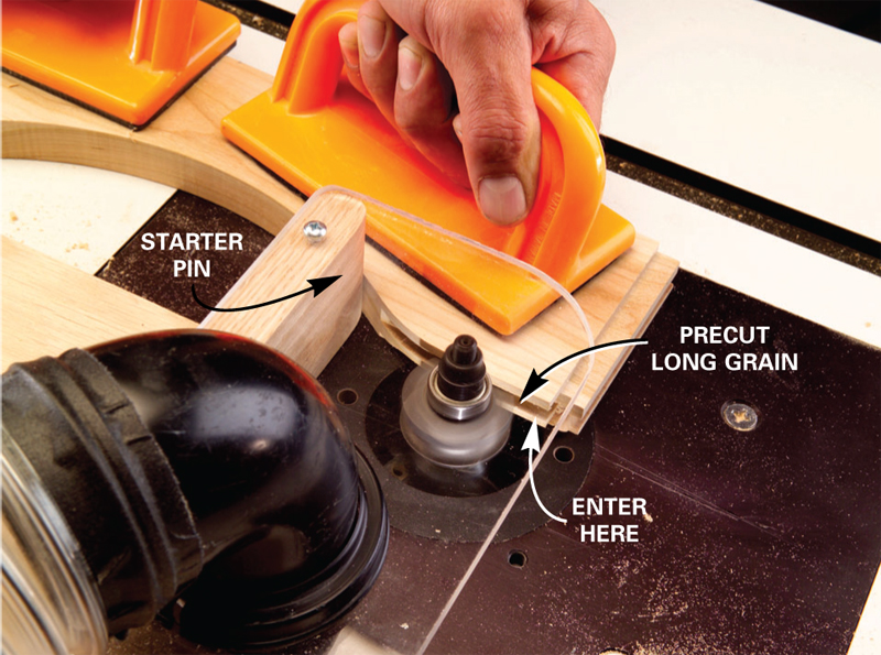 on the router and position the arch against the starting pin without