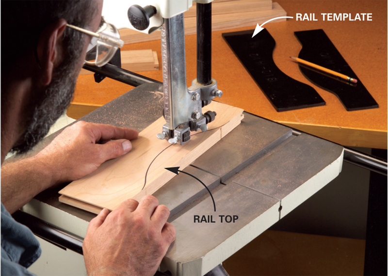 6. Rough-cut the arch in the top rail. Center the rail template
