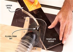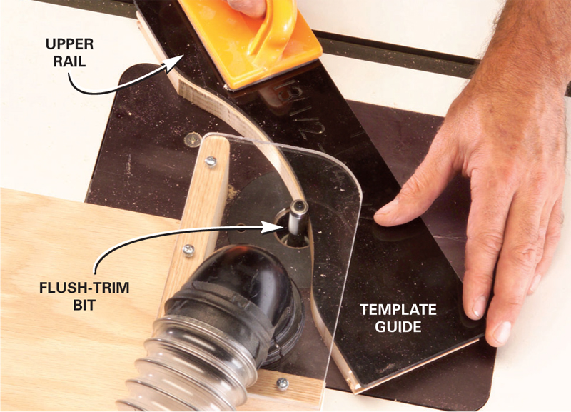 7. Flush-trim the rail with a template guide and a flush-trim