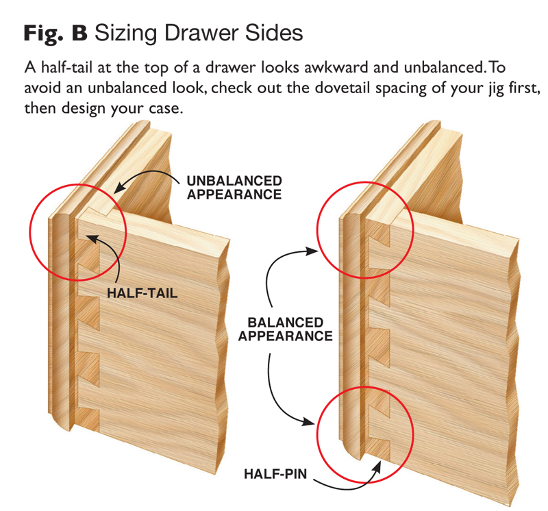 | You can do more with your half-blind dovetail jig than meets the eye. You’ve probably used it to make drawers with plain, inset fronts, but it’s really quite simple to make lipped drawer fronts, too. Even though most dovetail jigs are basically the same, some of their manuals don’t go into much detail about how to make this variation of the basic drawer (they often call it a rabbeted drawer, which is confusing). Whatever kind of jig you have, here’s a foolproof process for making lipped drawers from beginning to end. Ideal drawer widthsIf this is your first time out with a dovetail jig, try making I think drawer sides look best when there’s a half-pin at the Location of drawer-bottom