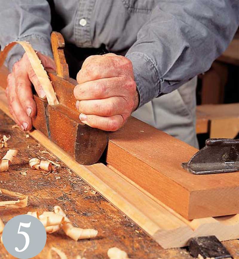 Place the sole’s ridge into the molding’s V-shaped notch and make your first cut. For each subsequent cut, tilt the plane farther into the workpiece (see lead photo). You’re done when the ogee’s curves meet in a smooth transition that matches your profile.