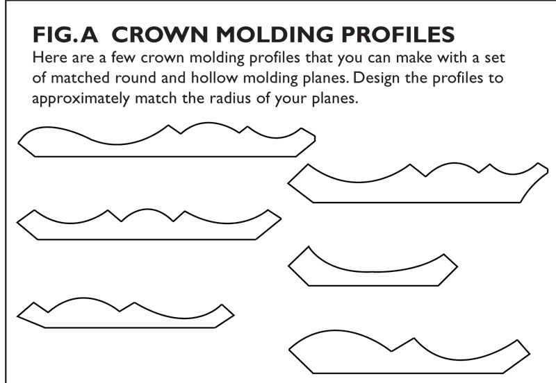 In this article, I’ll show you how I make a 41⁄2-in.-wide crown molding using a set of complementary, 1-in.- radius planes. Once you get the hang of working with these time-honored tools, you’ll be able to make a variety of moldings (see Fig. A).