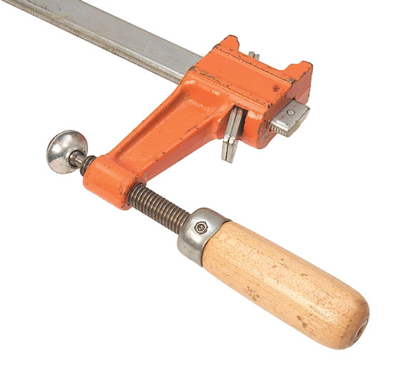 Adjust your clampsMake sure your clamps are ready before you glue. Unscrew the handles until you have a maximum amount of thread available. Sticky clamps can slow you down. Slide the sliding head on a small bar clamp or the tail stop on a pipe clamp to make sure it moves freely. |