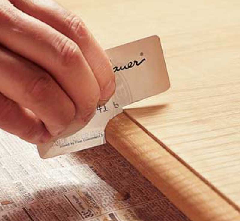 squeegee off all of the excess with a plastic scraper or old credit card.
