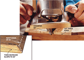 router bits cut a 45-degree chamfer. Increase