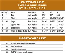 Cutting List & Hardware List
