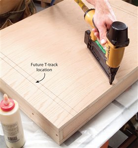clamping. Avoid the T-track locations so you don’t rout into a brad later. It