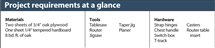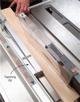 6. Taper the sides of the legs using a taper jig on the tablesaw.