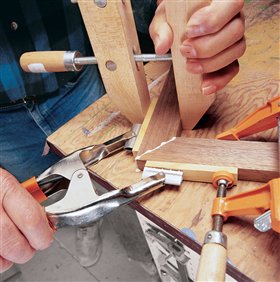 of the miter joint while clamping it. Hold the joint tight,