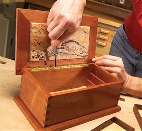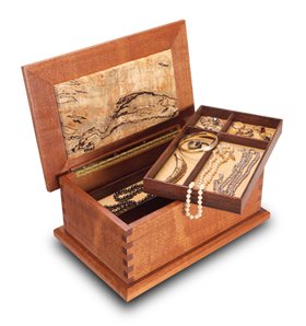 I’ll bet somewhere in the dark recesses of your shop you’ve squirreled away a small piece of special wood, just waiting for the right project. No doubt you’ve saved it to become the centerpiece of something well-crafted, small in scale and novel in design. This jewelry box is the perfect project to showcase that dusty board.