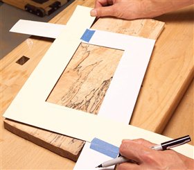 5 Make the lid’s panel from that stunning piece of wood you’ve been hoarding. To find the best grain orientation, make two cardboard L shapes by tracing a carpenter’s square. Tape them together to form a window the same size as the panel.