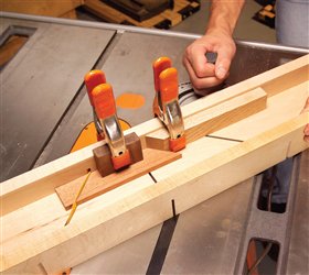 11. Make the splines (D). Their exact thickness is very important. Too tight, and you won’t be able to slide them in the grooves after you add glue. Too loose, and they won’t align the frame pieces. The spline’s width should be 1/64 in. less than both grooves’ combined depth.